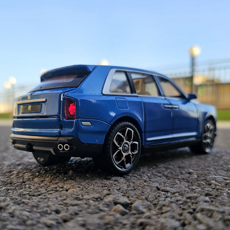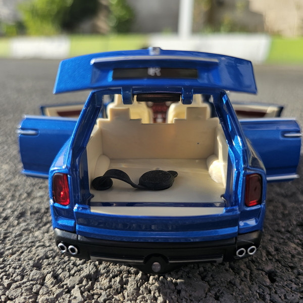 از ویژگی های ماشین رولز رویس کولینان (1:24) می توان به هفت درب باز شدن آن اشاره کرد. درب های راننده و شاگرد به سمت جلو و درب های سرنشینان به سمت عقب با باز کردن درب کاپوت جزئیات داخل موتور و با باز کردن درب صندوق محل ریختن آب جهت ایجاد دود هنگام حرکت ماشین را به خوبی مشاهده میکنیم.