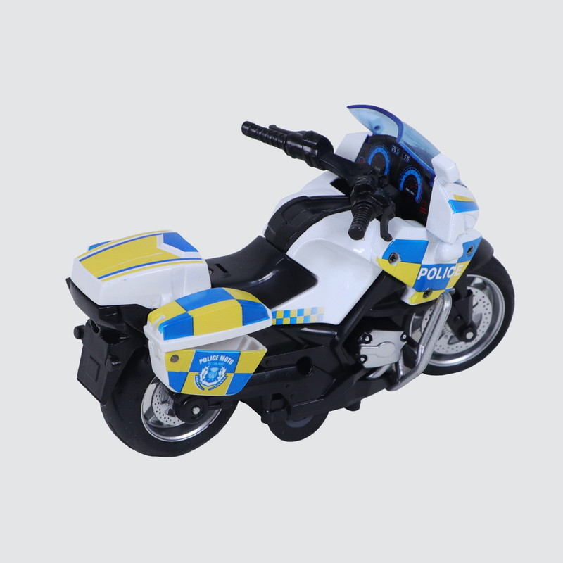موتور بازی فلزی پلیس M+ از بدنه فلزی بسیار با کیفیتی برخوردار میباشد که قسمت هایی از آن پلاستیک میباشد که طراحی موتور به روی آن به خوبی انجام شده است. فرمان موتور بازی قابلیت تکان خوردن دارد و موتور بازی را هدایت میکند. رینگ های لاستیک از فلز میباشد و جلوه بسیار زیبایی دارد. در قسمت پشتی موتور دو عدد باکس نصب شده است که درب آن قابلیت باز و بسته شدن دارد. همچین بر زیر موتور دو عدد چرخ جداگانه میباشد که سیستم حرکتی عقب کش را شامل میشود. همچنین موتور موزیکال و چراغدار میباشد و با فشار دادن چرخ عقب روشن میشود.
